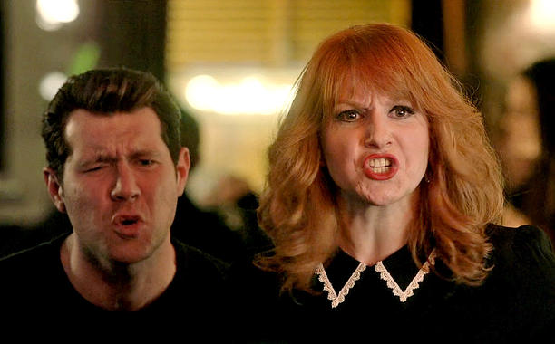 However, Difficult People shows the full recuperation of this campiness. Julie and Billy are obsessed only with the entertainment industry and their careers in it. There are no ends to their campy behavior other than to reproduce and enter the logic of the media. They are not nice people, and the show foregrounds their meanness as the source of humor. However, like Kimmy Schmidt, their reaction to the context around them, in the end, is elevated as a feminist brand of independence. Their “difficult” meanness and self-absorption is not, finally, horrible. In contrast to the people around them meanness turns to sharpness and sharpness to acuity, making them the realists of the show. Julie’s earnest boyfriend, Arthur, works for public television, and is sidelined as an ineffectual fool. In the end, his form of idealism is feminized, and Julie and Billy are shown to be the most traditionally masculine characters on the show. This elevation of the masculine is underscored by Billy’s disdain for Matthew, his hyper-effeminate coworker. Like TUKS, the series begins with an equal distribution of undesirable and laughable characteristics to all the characters, including the protagonists. However, in the end Julie and Billy are revealed as the smartest kids in the room. This is exemplified in episode five, where they decide to help out Arthur by intervening in his station’s terminally boring fundraiser. To raise funds they stage a mean-spirited roast on the air, raising record-breaking amounts of money, ultimately saving Arthur’s job. Here, it is made clear that their brand of sensibility is a kind of realism that more decorous characters can’t access.