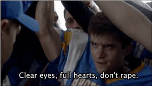 This untouchability goes to the limits of representation and representational politics. Saying a word (or not saying it) has little to no effect on culture— let alone rape culture. Why? Because, rape culture is the dominant culture. In fact, it’s the only culture we know. In football, as in capitalism, our coach reminds us the whole point of the game is “violently dominating anyone that stands between you and what you want.” After all, “that other team they’re not just gonna lay down and give it to you.”