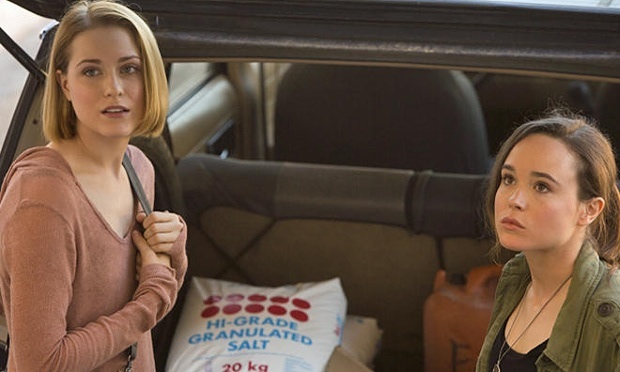 Critics of the film, however, don’t trust these women or their relationship. In an offhand comment Charles Bramesco writes, “[Nell and Eva’s] verisimilitude as siblings suffers a bit from odd miscasting–there’s no way that Page is studying for her SATs–as well as the fact that Page and Wood don’t look like they could possibly share any DNA.” He doesn’t unpack this accusation against Nell–why wouldn’t she be studying for the SATs? Similarly, giving the film a measly two stars, Nigel M Smith’s review, “Into the Forest review: Elliot Page lost in thorny apocalypse drama,” in The Guardian complains that these aren’t characters an audience can invest in. He seems to want these characters to be relatable. Yes, this is a film, but that doesn’t mean that these women are here for our entertainment. Assuming so misses a crucial point that the film makes about gender. The film privileges a non-male relationship over the male-homosocial relationships (of which we see practically none in the film) and, more importantly, over female-male relationships.