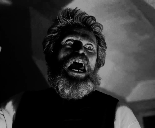 The final blow comes to the men through their passion for the lighthouse beacon, which, like the box that contains a nuclear device in the noir film Kiss Me Deadly, represents their desire not only for self-destruction, but for utter world-annihilation. This phallic beacon has become central to the self-mythology the men have constructed, and as in the Oedipus myth of willful blindness to the truth, it burns out Winslow’s eyes. All along, the men have had a choice between an intimate relationship of care or perhaps even love with each-other’s warm, pliant, craggy, dirty flesh, and the cold obliterating abstraction of the phallic beacon. But the choice seems fore-ordained, Wake has already served Winslow his fate, sending: “Black waves teeming with salt foam to smother this young mouth with pungent slime, to choke ye, engorging your organs til’ ye turn blue and bloated with bilge and brine and can scream no more,” or so goes his curse.