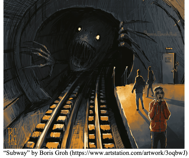 Also published in 2019, Will Hunt’s Underground: A Human History of the Worlds Beneath Our Feet traces geological and cultural associations using a more ethnographic approach. Hunt explores underground cities, nuclear bunkers, and abandoned subway stations. For Hunt, the underground is not only a place but “a feeling: something forbidden, unspoken, or otherwise beyond the known and ordinary.”[x] Perhaps more than half of the world’s caves remain undiscovered,[xi] an appealing metaphor of the mysteries of both the natural world and human consciousness. Hunt often invokes evolutionary associations with the underground, such as the way in which a “cave threshold” inspires “a reflexive premonition of our eventual death—which is to say, we brush up against the one thing natural selection has designed us to avoid.”[xii] Horror scholars would no doubt agree with this association, but at the same time, especially considering Subway Horror, one wonders how much of an impact these evolutionary traits have in the context of a cave that has been refashioned as a “modern” tunnel with conveniences and a train that travels at high speeds. Hunt leans heavily on evolutionary psychology of this kind, describing the “dark zone journey” as “humankind’s oldest continuous cultural practice, with archeological evidence going back hundreds of thousands of years, before our species even existed.”[xiii] Like Macfarlane, Hunt also foregrounds the apparent paradox of the underworld: “We go underground to die, but also to be reborn, to emerge from the womb of the earth; we dread the underground, and yet it is our first refuge in times of danger; it conceals priceless treasures, alongside toxic waste; the underground is the realm of repressed memory and of luminous revelation.”[xiv]