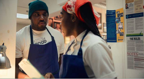 Laughing at the kitchen as a workplace is precisely how Sydney and Marcus deal with this confusion between the pleasures that brought them to cooking and baking and the abject reality of working the line. “It would be weird to work in a restaurant and not completely lose your mind,” Sydney tells Marcus at one point. “Is that not weird, though?” he asks back, smiling. They don’t sit with that question, really—partly because they already know the answer to it. Joking about it gives them an ambiguity to inhabit together, while they also keep coming back to what they love about the kitchen. “I wanna cook for people and make them happy and give them the best bacon on Earth,” Sydney tells Marcus.