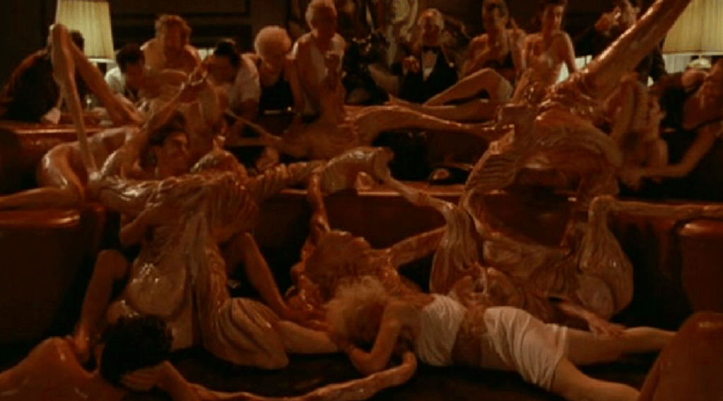 Back in the eighties many of us were theorizing that people like Trump—pompous, insatiable elitists who lived to display their wealth and power and crushed anyone who got in their way—were something less and more than human. In Society, protagonist Bill finds this is true when his obscenely rich family reveals their true colors as sharp-dressed aliens who participate in something called “the shunting” behind closed doors, a revolting ritual in which the rich fuse together to literally feed off the poor. Society, which could be written off as a fun but didactic caricature of the wealthy, becomes glorious body horror in the hands of Japanese special effects artist Screaming Mad George who dreams up and executes the most raucously grotesque images imaginable. As the elite of Beverly Hills dissolve into a gooey, writhing mound of undifferentiated flesh, no orifice is spared from hideous and hilarious violation, as we see when Bill runs from a slimy fusion of his mother and sister who are attempting to seduce him, only to encounter his father’s face laughing at him from between prominent butt cheeks. Half Dali painting, half dirty joke, all scathing satire, this film offers the burgeoning class warrior horror fan all the gory, politicized, surrealism they might not have known they needed.