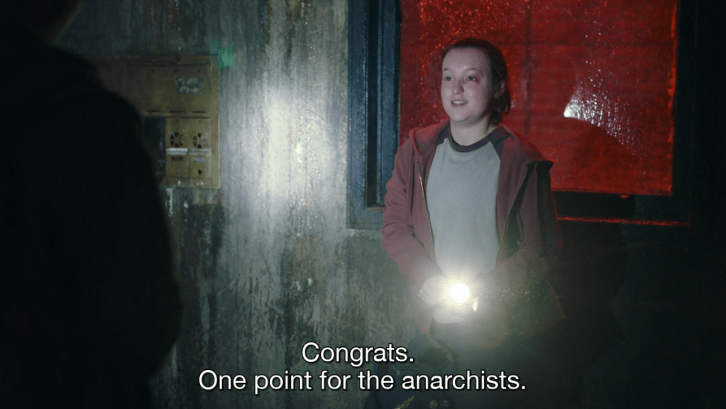 Ellie was being trained by the Federal Disaster Response Agency (FEDRA), a bureaucratic component of the totalitarian remains of the US government, but she rejects a future with FEDRA. The Fireflies are a form of resistance to FEDRA, but they also represent, we learn later in Season One, an existential threat to Ellie, because of their plans to experiment on her in search of a vaccine for the fungus. The personal and the political combine with often deadly consequences.